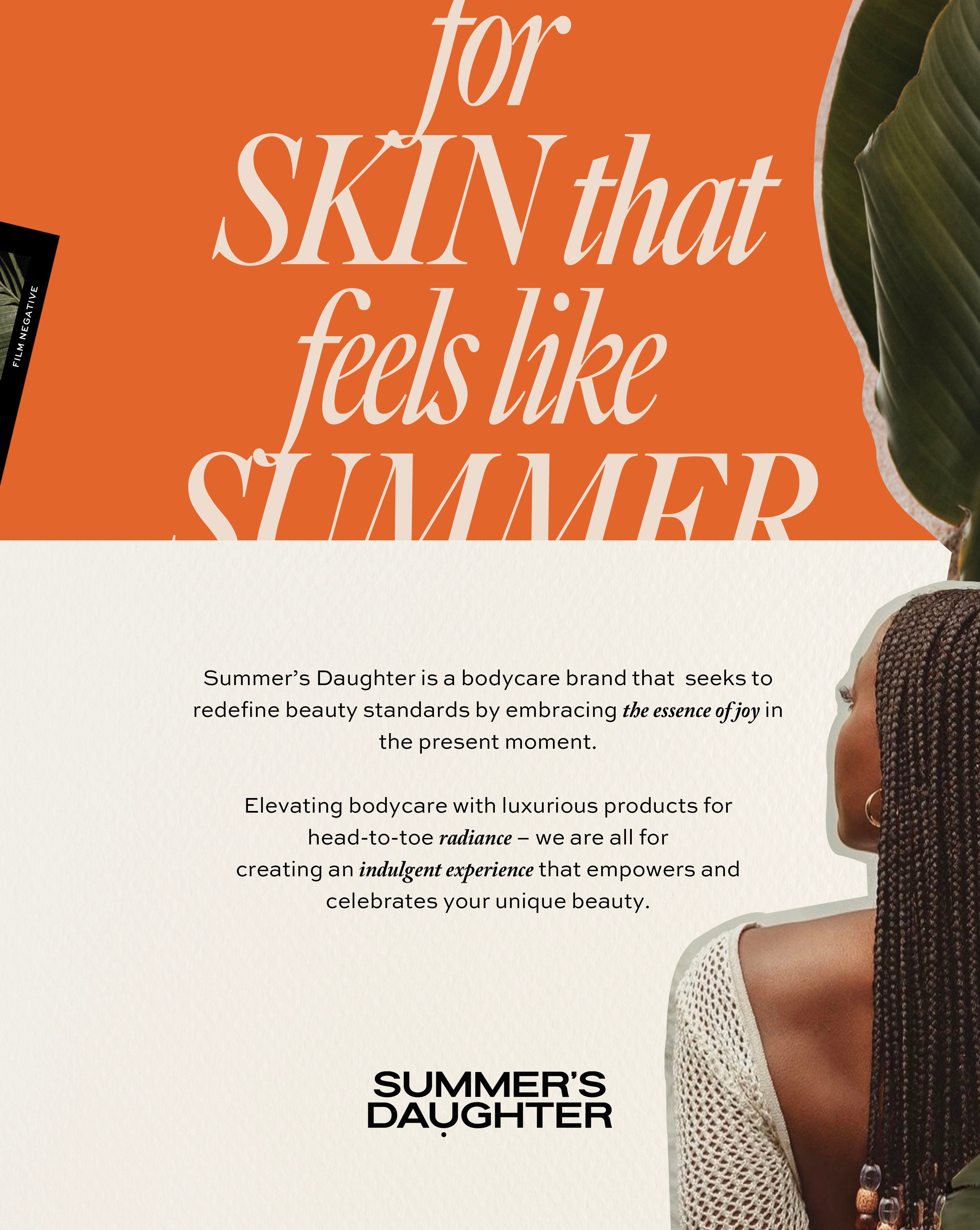 At Summer's Daughter, we're on a mission to revolutionise body care. We believe that every inch of your body deserves the same love and attention as your face. That's why we're here to shake up the industry and put body care in the spotlight.